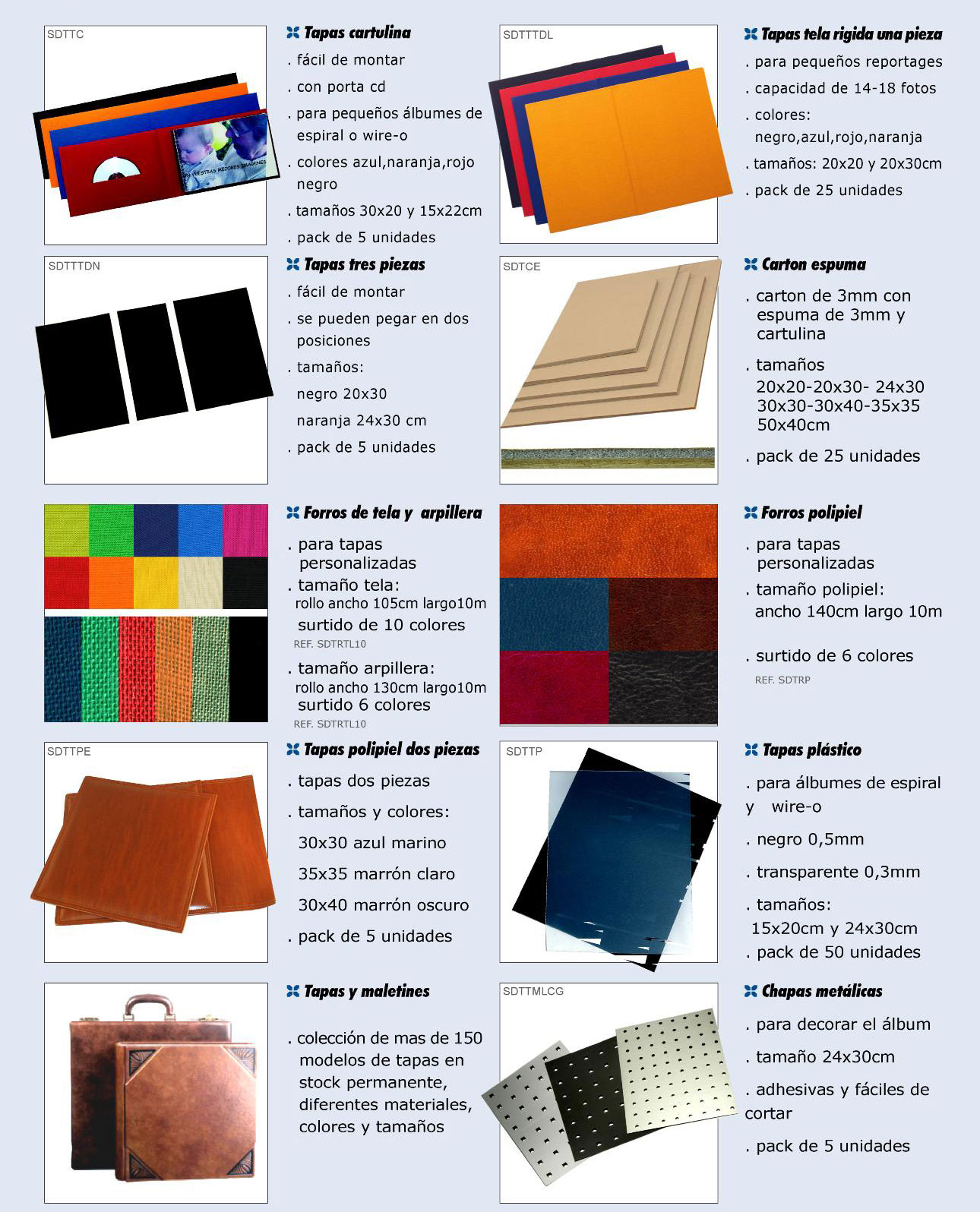 PRODUCTOS DISPONIBLES PARA LA REALIZACIÓN DE MONTAJE DE ALBUMES